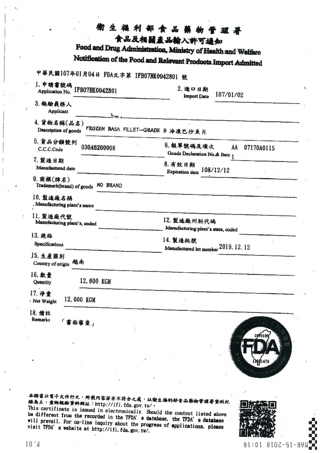 成分:巴沙魚